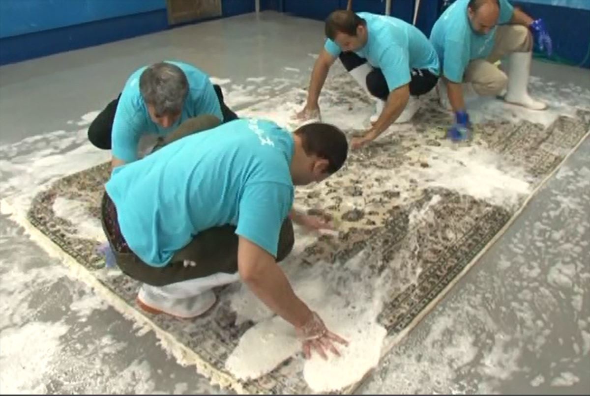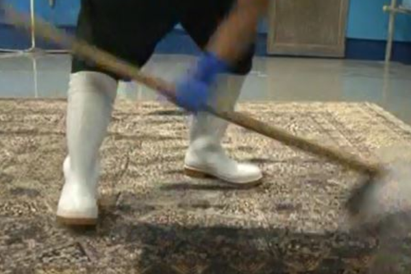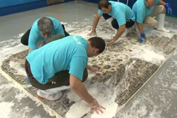 このような丁寧な作業で、お客様からお預かりした大切なじゅうたんを、きれいに洗浄させていただきます。