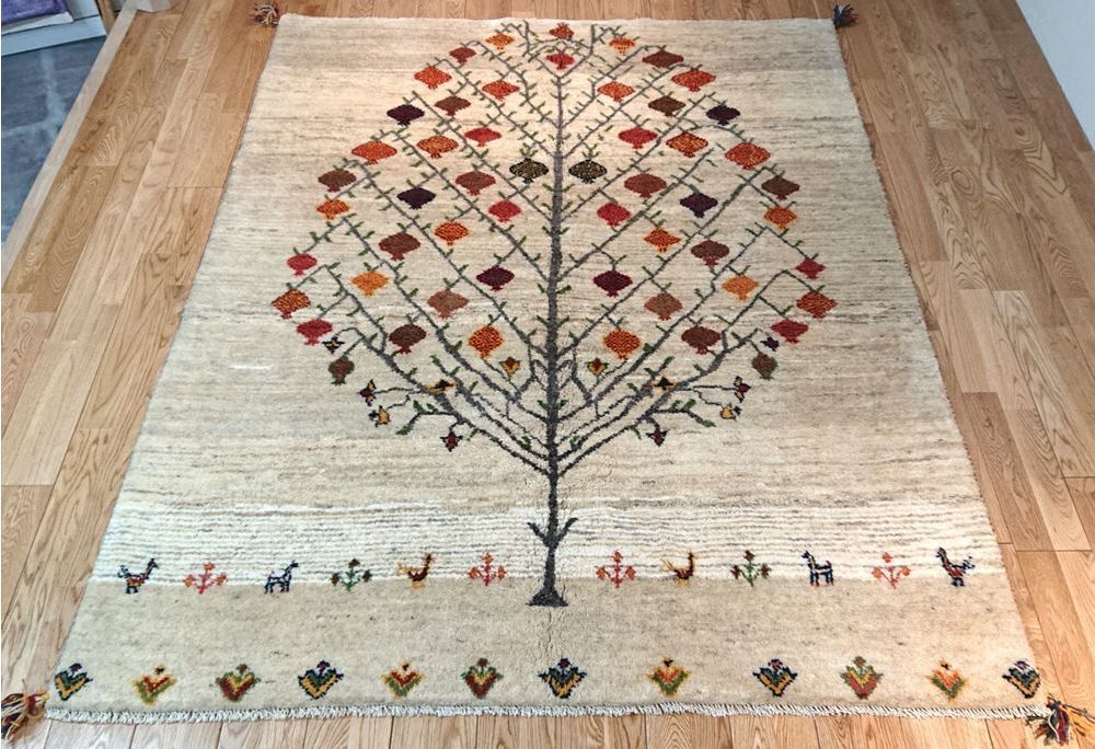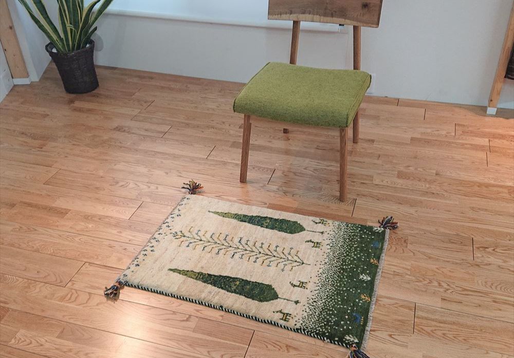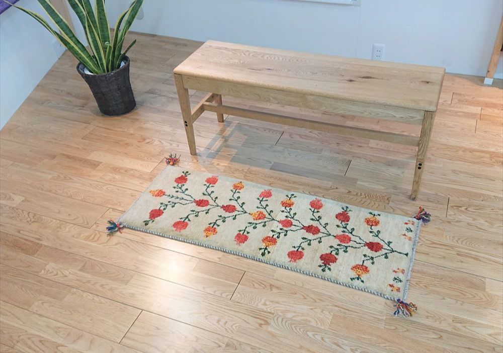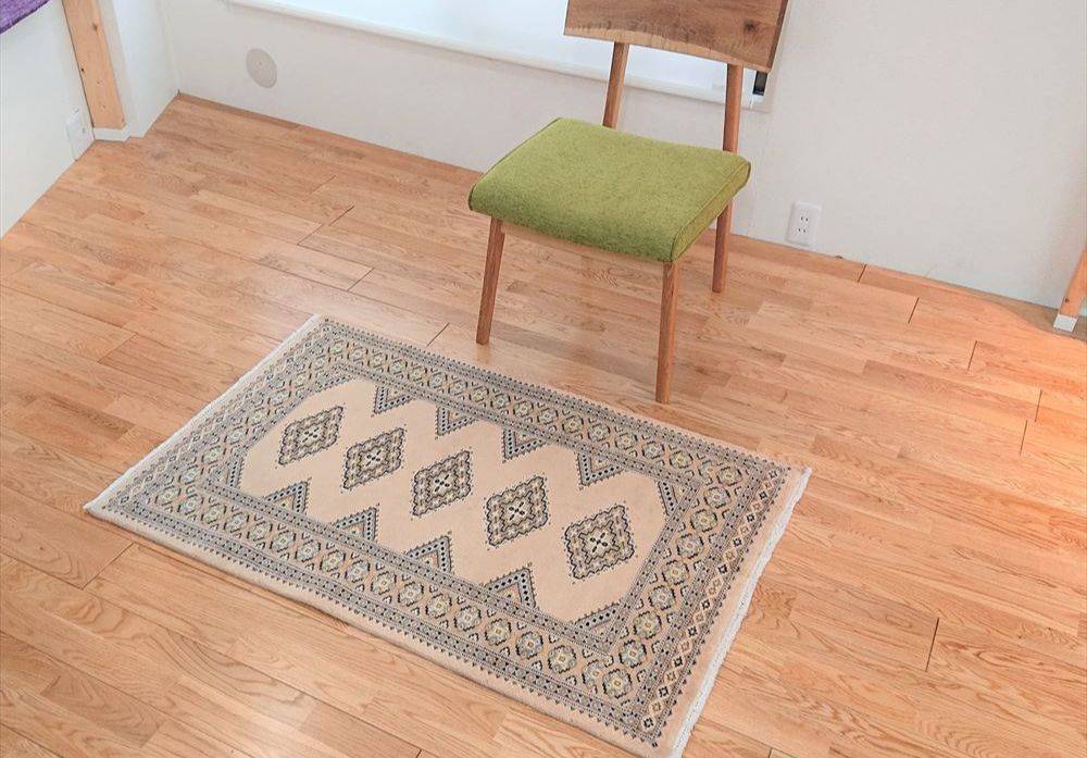 華やかなペルシャ絨毯やパキスタン絨毯に比べ、天然染のグラデーションの為、家全体の空間に奥行きを醸し出します。